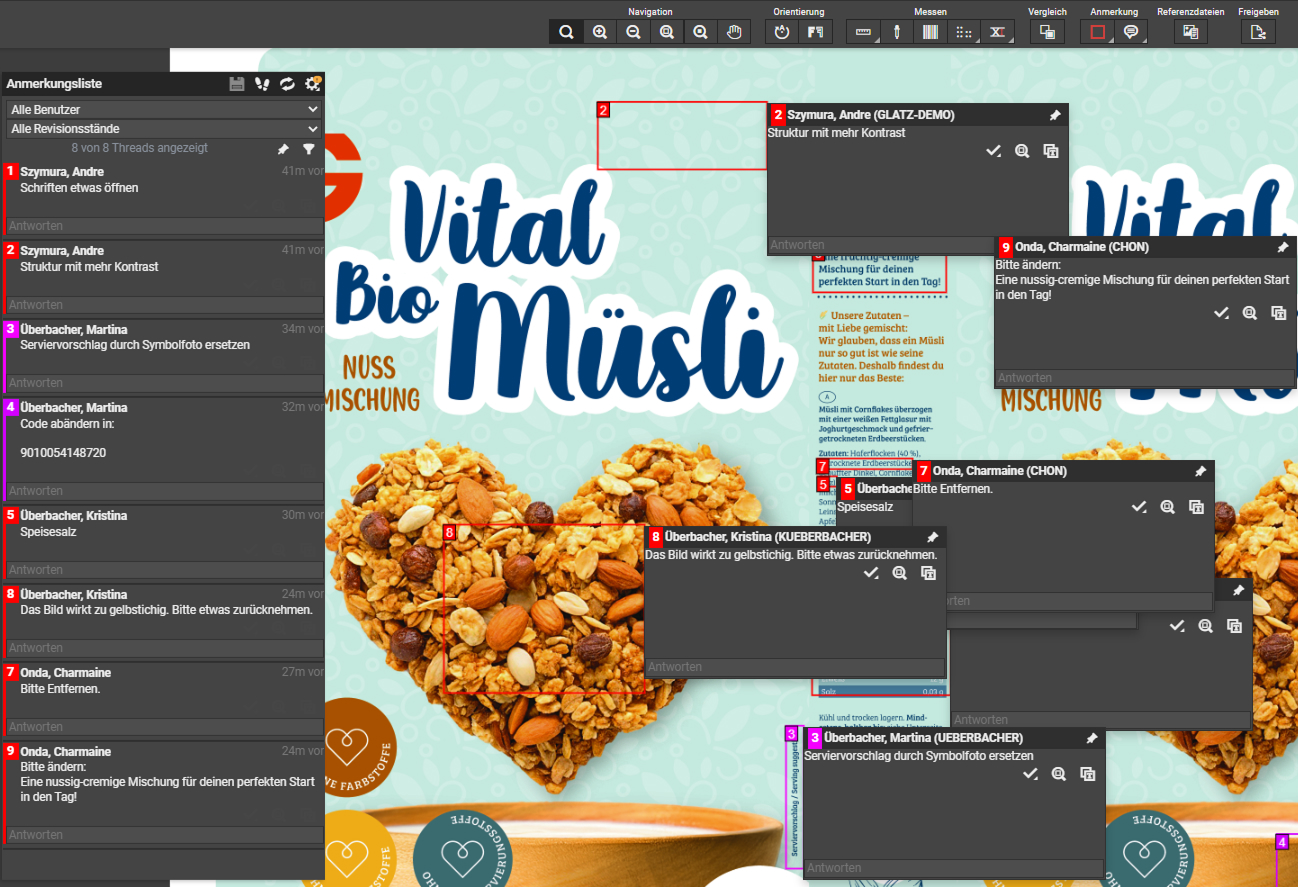 Alle arbeiten in einem zentralen System mit einheitlichem Informationsstand. Versionen, Feedback und Freigaben sind transparent gebündelt.